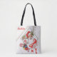Einfach Tasche anpassen, einfach Ihren Namen hinzufügen! Vintages Bild Weihnachtsbild mit einem Retro-Weihnachtsmann mit Bonbons, Weihnachtsglocken und einem Sack voller Spielsachen in einer rautenförmigen Form mit Sternen.