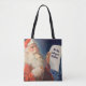 Einfach Tasche anpassen, einfach Ihren Namen hinzufügen! Vintage Illustration Fröhliches Weihnachtsbild mit einem fröhlichen Weihnachtsmann mit seinem roten Hut und Überprüfung seiner frechen oder schönen Liste an Heiligabend.