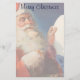Vintage Illustration Fröhliches Weihnachtsbild mit einem fröhlichen Weihnachtsmann mit seinem roten Hut und Überprüfung seiner frechen oder schönen Liste an Heiligabend.