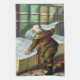 Vintage Illustration Frohe Weihnachtsfeiertage mit einer Seite aus dem Buch Santa Claus and Seine Werke. Veröffentlicht von McLoughlin Brothers im Jahr 1889. Die Geschichte erzählt von der Arbeit des Weihnachtsmannes, Spielzeug für alle guten kleinen Jungen und Mädchen auf der ganzen Welt zu machen. Dieses Viktorianische Era-Bild zeigt den alten, fröhlichen St. Nikolaus, der durch seine Bibliothek von Riesenbüchern mit den Kindernamen auf seinen frechen und netten Listen las.