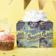 Vintage Illustration Frohe Weihnachtsfeiergestaltung mit Covergrafik aus dem Buch Santa Claus and Seine Werke. Veröffentlicht von McLoughlin Brothers im Jahr 1889. Die Geschichte erzählt von der Arbeit des Weihnachtsmannes, Spielzeug für alle guten kleinen Jungen und Mädchen auf der ganzen Welt zu machen. Dieses Viktorianische Era-Bild zeigt einen klassischen und alten, fröhlichen St. Nikolaus mit einer langen, weißen Bart Nähkleider für Spielpuppen.