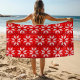 Weihnachts Red White Winter Holiday Strick Snowflakes Beach Handtücher zeigt ein Strickmuster von weißen Schneeflocken auf einem roten Hintergrund. Ideal, um warm und gemütlich behalten. Von Evco Holidays entworfen www.zazzle.com/store/evcoholidays