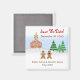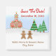 Ein Weihnachts-/Winter-Thema speichern den Datums-Magneten mit einer lustigen Winterszene mit schneebedeckten Weihnachtsbäumen, Lebkuchenkirche und Lebkuchenbräu und Bräutigam. Personalisieren Sie den Text mit Details zu Ihrer Veranstaltung.