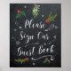 Ein schönes Gästebuchzeichen zum Weihnachts- und Winterthema für Ihre Hochzeit/Ihr Party. Mit einem Chalkboard-Effekt Hintergrund und heiligen und Kiefer Ast Akzenten. In dieser Sammlung finden Sie viele Koordinationszeichen und Einladungen.