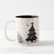 Celebrate the magical and festive holiday season with our personalized foto mug. Our vintage holiday design feature a farm landscape of Christmas trees, this Christmas pattern feature a farm Christmas scene with a farm, a red barn, children playing and throwing snowballs, Christmas trees and a red vintage truck
