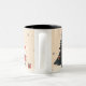 Celebrate the magical and festive holiday season with our personalized foto mug. Our vintage holiday design feature a farm landscape of Christmas trees, this Christmas pattern feature a farm Christmas scene with a farm, a red barn, children playing and throwing snowballs, Christmas trees and a red vintage truck