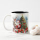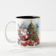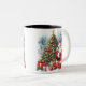 Celebrate the magical and festive holiday season with our personalized foto mug. Our vintage holiday design feature a farm landscape of Christmas trees, this Christmas pattern feature a farm Christmas scene with a farm, a red barn, children playing and throwing snowballs, Christmas trees and a red vintage truck