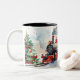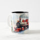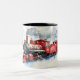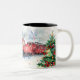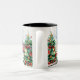 Celebrate the magical and festive holiday season with our personalized foto mug. Our vintage holiday design feature a farm landscape of Christmas trees, this Christmas pattern feature a farm Christmas scene with a farm, a red barn, children playing and throwing snowballs, Christmas trees and a red vintage truck
