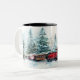 Celebrate the magical and festive holiday season with our personalized foto mug. Our vintage holiday design feature a farm landscape of Christmas trees, this Christmas pattern feature a farm Christmas scene with a farm, a red barn, children playing and throwing snowballs, Christmas trees and a red vintage truck