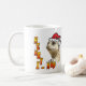 Dieses ist eine sehr nette Weihnachtenmeerkat Kaffee-Tasse. Es hat einen Weihnachtshut mit bunter Beschriftung mit Schnee auf ihm.