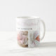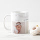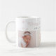 Schicke festliche moderne Feiertags-Tasse mit "Fröhliche kleine Weihnachten" in rosa erröteter Schreibschrift-Typografie, 3 Ihrer Lieblingsfotos mit kleinen Schneeflocken.