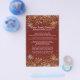 Weihnachtsmenü rot und gold. Dunkelrot mit goldenen Schneeflocken und abfallenden Schneeflocken an der oberen und unteren Kante. Geben Sie den Familiennamen und das Datum des Jahres an der Spitze ein, und listen Sie dann alle für eine Feier vorgesehenen Speisen auf. Geben Sie den Namen des Kochs / Koch für jedes Element für eine personalisiertere und lustigere Menüliste ein. Das Menü ist für diese 5x8 Größe gemacht. Die Rückseite ist mit Schneeflocken geschmückt.