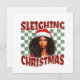 Schöne afroamerikanische Frau im Retro-Stil mit dem "Sleighing Christmas Zitat"