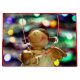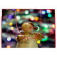 Weihnachtsgeschenk-Tasche mit einem kleinen Engel mit einem goldenen Herz-Ornament vor mulit farbigen Weihnachtslicht Hintergrund ... es ist lustig und festlich!! Frohe Weihnachten für alle!
