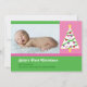 Niedliche und farbenfrohe kleine Girl-Fotokarte. Ein weißer Weihnachtsbaum in einer rosa und grünen Farbpalette mit hellen Akzenten. Modern und elegant. Fügen Sie Ihr eigenes Bild und Ihre Formulierung hinzu. Ideal für Baby's First Christmas. Kann auch für eine Familienkarte angepasst werden.