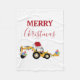 Eine niedliche Illustration eines Weihnachts-Backhoe-Bauskers, der eine Weihnachtsmannmütze trägt und in Weihnachtsbeleuchtung dekoriert ist. Perfektes Geschenk für diejenigen, die LKW, Spielzeuglaster oder schwere Maschinen Liebe in jedem Alter.