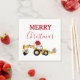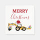 Eine niedliche Illustration eines Weihnachts-Backhoe-Bauskers, der eine Weihnachtsmannmütze trägt und in Weihnachtsbeleuchtung dekoriert ist. Perfektes Geschenk für diejenigen, die LKW, Spielzeuglaster oder schwere Maschinen Liebe in jedem Alter.