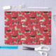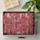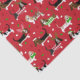 Niedliche Basset Hound Hunde mit braunen, schwarzen, weißen und Zitronencoats in festlichen Urlaubssoutiquen, Weihnachtsmannmützen und Raute Pullover mit verstreuten Weihnachtsschmuck.
