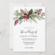 Diese Weihnachtsberries Grüne Hochzeit Einladung schön kombiniert den festlichen Charme der Feriensaison mit eleganter Einfachheit. Dieses Design mit zarten grünen Blätter und lebendigen roten Beeren spiegelt den Geist einer Winterhochzeit wider. Das minimalistische Set vor einem weichen Elfenbeinhintergrund schafft ein modernes und zeitloses Aussehen. Ideal für Paare, die eine Touch von Weihnachtsgrün suchen, um ihren besonderen Tag zu ergänzen.