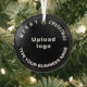 Frohe Weihnachten! Glasschmuck mit fröhlichen Weihnachtsgrüßtexten, Ihrem Geschäfts- oder Firmennamen und Logo. Designs sind weiße Texte auf schwarzem Hintergrund und auf Kreisform. Ornament zur Dekoration des Weihnachtsbaumes in Ihrem Geschäft, Shop oder Büro. Ornament, um Ihre Kunden in dieser Feriensaison visuell zu begrüßen und Ihr Unternehmen zu werben oder Ihren Markennamen zu fördern. Passen Sie es an und nutzen Sie es, um Markenbewusstsein zu schaffen. Bitte Karo nach dem Hochladen des Logos und der Eingabe Ihres Firmennamens. Wenn Ihnen das Aussehen gefällt, können Sie jetzt Ihre Bestellung aufgeben. Wenn Sie das Logo und die Texte verändern und verschieben müssen, um auf diesen Schmuck oder auf andere Stile, die Sie wählen werden, passen Sie bitte das Design-Tool an. Sie können auch andere Änderungen vornehmen, die Ihren Wünschen entsprechen, z.B. die Farbgestaltung des Ornaments, die Farbe des Schriftartes und der Stil des Schriftartes. Frohe Weihnachten! Wir wünschen Ihnen mehr Umsatz in dieser Feriensaison.
