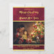 Eine moderne Weihnachtskarte in Bordeaux und Imitaten Gold. Anpassen und fügen Sie Ihr Foto für den Urlaub Grüße. Frohe Weihnachten in einem handgeschriebenen Stil Skript mit einem Imitat Gold Textur. Die Bordeaux-Farbe ist uneinheitlich, wie eine Limone Wandmalerei im Fresko. Vorlage für Ihren Familiennamen und das Jahr.