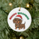 Weihnachts-Braun-Dackel-Ornament: Frohe Weihnachts Keramik Ornament