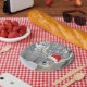 Weihnachts-Buckel in Schneeflocken Pappteller