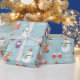 Dieses niedliche Urlaubsdesign zeichnet sich durch festliche Eulen, Füchse, rote Autos mit Weihnachtsbäumen, Schneemänner, Häuser und vieles mehr auf einem sanften blauen Hintergrund von Mond und Sternen aus.