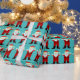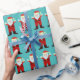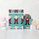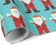 Cartoon Santa Claus grinst und winkt auf diesem Weihnachtsverpackungspapier nach wiederholtem Muster. Er trägt einen karierten Anzug und sieht albern aus.
