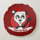 Rundkissen mit Illustration eines niedlichen Pandagebügels mit Hut des Weihnachtsmannes; großartige Dekoration für Weihnachtsfeiertage, bearbeitbares Vorlagendesign mit individuellem Feld für Ihren eigenen Text, illustriert von Radka Kavalcova
