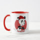 Weihnachts-Tasse mit Illustration eines niedlichen Pandavorstehers mit dem Hut des Weihnachtsmannes; großartige Dekoration für Weihnachtsfeiertage, bearbeitbares Vorlagendesign mit individuellem Feld für Ihren eigenen Text, illustriert von Radka Kavalcova
