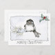Ein niedlicher Chickadee, der im Winter auf einem Ast steht, flatterte gegen die Kälte. Eine originale Aquarellfarbe von Bobcatcreek.com.