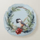 Weihnachts-Chickademie Bird in Wreath Art Rundes Kissen