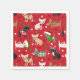 Niedliche Weihnachtshunde Chihuahua mit schwarzen, bräunlichen, cremefarbenen, blauen und grauen Mänteln in festlichen Urlaubssoutiquen, Weihnachtsmannmützen und Raute Pullover mit verstreuten Weihnachtsschmuckmustern.
