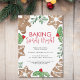 Die Party Einladung des Weihnachtskeksaustauschs ist mit Aquarellkeksen, Heiligen, Misteloe und Beeren dekoriert. Es heißt "Backend Spirits Bright" ist eine stilvolle Skripttypografie. Auf der Rückseite ist ein Lebkuchengewohnheitsmuster. Einfach anpassbar. Original Wasserfarbe © Michele Davies.
