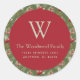 Dieser festliche Weihnachtsaufkleber zeigt einen abgestuften roten Kreis auf einem winterfarbenen Wintergartenmuster von Cranberry Beeren, Blätter und Sprigs auf grünem Hintergrund. Personalisieren Sie das Design mit Ihrem Monogramm Initial- und Familiennamen in blassgrün serf Schriftart, mit Ihrer Adresse unten in sans serif.