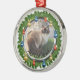 Weihnachts-Ziergegenstände mit farbenfroher und festlich dekorierter Kranzhintergrund. Wechseln Sie einfach das Foto mit dem Foto Ihres Tieres aus und bearbeiten Sie den Text für ein personalisiertes Ornament.