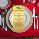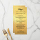 Weihnachts Party Dinner Menü Karte. Personalisieren und fügen Sie einen Namen/Ereignis, Datum und Menü. Ein Imitat mit goldfarbenem Hintergrund, schwarzer Text.