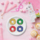 Farbenfrohe Auswahl an Weihnachtsdonuts. Dieses Design wirkt auf diese Paper-Teller sehr effektiv