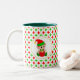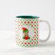 Weihnachts-Elf auf Green & Red Diamond Star-Muster Zweifarbige Tasse