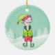 Goofy Cartoon Elf mit 3 Zähnen, einen grünen Hut mit passender Jacke, rote Hosen und eine Glocke auf seine Schuhe. Original Cartoon von Taylor Addams.