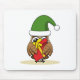 Eine Illustration einer schüchternen Elfeneule mit grüner Weihnachtsmannmütze und rotem Geschenk mit gelbem Band. Dieses niedliche Cartoon-Design ist eine Geschenkidee für Eulenliebhaber, Vogelliebhaber und Fantasy- oder Magie-Filmliebhaber. Sind Sie aufgeregt, Ihr Geschenk zu Weihnachten zu erhalten?