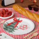 Weihnachtsfeiertag Teller mit Weihnachtsbaum und Roter Bogen. Oh, was für ein Spaß!