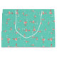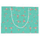 Stilvolles Design mit einer Retro-Touch mit festlich rosa Flamingos mit roten Weihnachtsmannmützen, Stars und Palmen, die mit Baubles Set vor einem Aquahintergrund verziert sind. Ein individuell anpassbares Design für Sie, um mit Ihrem eigenen Text, Bildern und Ideen zu personalisieren. Ein originelles digitales Kunstbild von Quirky Chic.