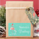 Stilvolles Design mit einer Retro-Touch mit einem festlich rosa Flamingo mit roter Weihnachtsmannmütze, Stars und Palmen, die mit Baubles Set vor einem Aquahintergrund verziert sind. Ein individuell anpassbares Design für Sie, um mit Ihrem eigenen Text, Bildern und Ideen zu personalisieren. Ein originelles digitales Kunstbild von Quirky Chic.