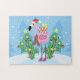 Weihnachts-Flamingo mit Kaktus Puzzle