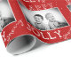 Weihnachts-Wrapping Paper von Weihnachtsweiße Typografie. Roter Hintergrund mit Schneeflocken und weißem Merry, Happy, Jolly Typografie mit einem individuellen Foto - legen Sie Ihr Lieblings-Foto in die Vorlage und machen Sie Ihr persönliches Weihnachtsgeschenk.