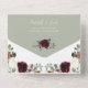 Diese elegante Weihnachtsfeier mit UAWG ist perfekt für eine Hochzeit im Urlaub. Die Einrichtung ist in schönen Aquarelltönen gehalten, weiß und bordeauxrot mit Kiefer, Heilige Beere und Eukalyptusgrün auf einem Holzboden. Dies ist ein perfektes Farbschema für eine Winterhochzeit. Machen Sie diese Einladung zu sich selbst, indem Sie Ihr eigenes Foto, Namen und alle Ihre Hochzeitsdetails einschließen. Verwenden Sie das erweiterte Entwurfswerkzeug, um diese Vorlage weiter anzupassen.