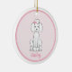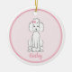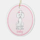 Ein niedlicher Poodle-Cartoon, der von einem lächelnden Hund zeichne, mit einem Foto-Bild, das Ihre liebliche Fibel platziert. Dieses Design umfasst ein Haustier Familie Foto niedlichen Hund, einen lustigen Weihnachtswelpen, eine lustige lustige Cartoon-Illustration, eine trendige, bezaubernde Poodle-Rasse, moderne Kalligraphie-Skript-Schriftart-Text, whimsical Typografie-Stil, Hunde Liebhaber Geschenk-Idee, anpassen Sie den personalisierten Namen, Weihnachtsbaumdekoration, ein rosa und weiß zeichnend Cartoon.