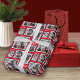 Machen Sie Ihr eigenes personalisiertes Verpackungspapier mit 5 Ihrer besten Fotos. Diese rote, weiße und schwarze Geschenkpackung hat einige einfache Schneeflocken und das Wort freudig ergänzt das Design.